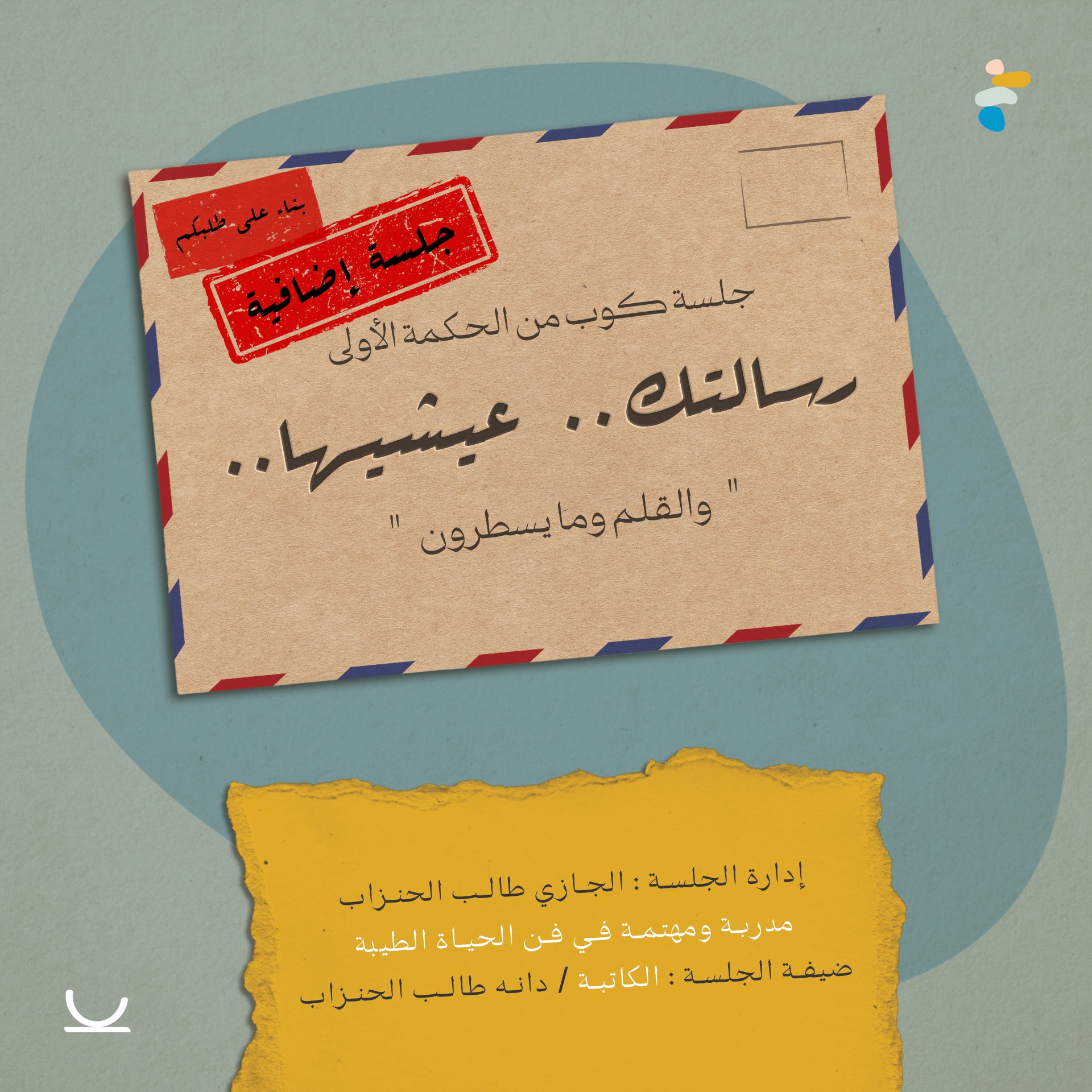الجلسة تتضمن حديثًا من القلب، وتمارين كتابة تأملية، وقراءة لرسائل داخلية لم تُكتب بعد